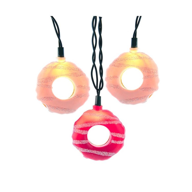 This Kurt Adler 10-light white and pink donuts light set is a fun, festive way to add to the lighting of your holiday or theme party! Each of the ten clear incandescent lights in this set has a white and pink light cover. There is a 30″ lead wire, 12″ spacing and a 6″ tail. This light set is a great addition to any decor.