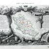 Antique hand colored map of the Department of Lot, France, from the Atlas National Illustre des 86 Departments et des Possessions de la France, Divise par Arrondissements, Cantons et Communea, by Levasseur, 1851. Surrounded by exquisitely detailed engraved illustrations and vignettes, as well as statistical and general information. Good to Very good overall antique condition with mild toning and wrinkling throughout, areas of mild foxing, and some minor edge wear. Measures approximately 11.25″ x 16.75″ (H x W) to the neatline.