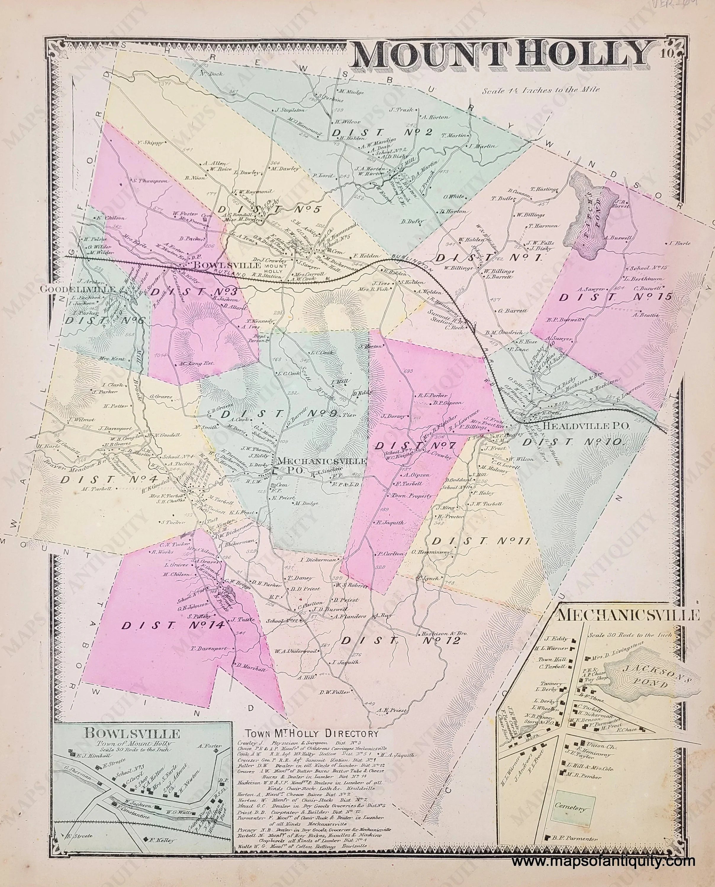 1869 – Mount Holly, VT – Vermont – Antique Map With Credit Card Online
