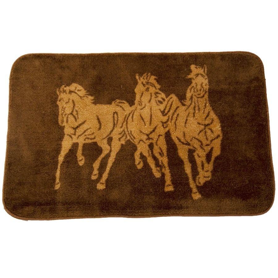The stately Three Horses accent rug portrays the dynamic scene of three handsome wild horses.