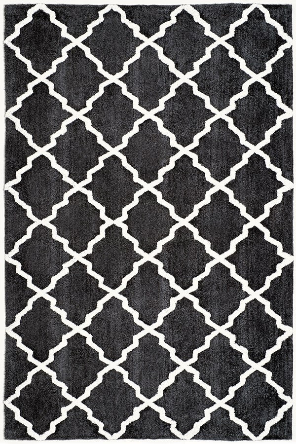 The Astralis Collection by Anji Mountain is inspired by geometric design and elevated by the use of supremely elegant and lifestyle-friendly bamboo viscose. Silky soft and irresistible to the touch, bamboo viscose provides both shimmer and softness for an alluring proposition. Ergo features a compelling quatrefoil pattern which is overtufted to great effect and a cool color palette of charcoal gray and ivory.
