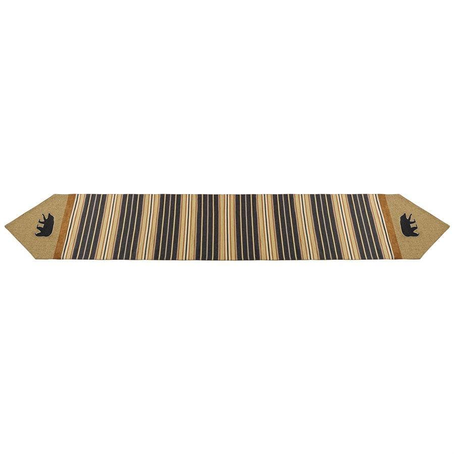 A handsome addition to your rustic lodge-inspired dining set. Our Ashbury Black & Tan Table Runner features distinct stripes in earthy shades of black and tan. Recalling natural elements of lodge living, this runner features bear appliques at both ends. Coordinate with our Ashbury Bedding Set, pillows, curtains, and shams to complete a sophisticated rustic lodge-inspired home.