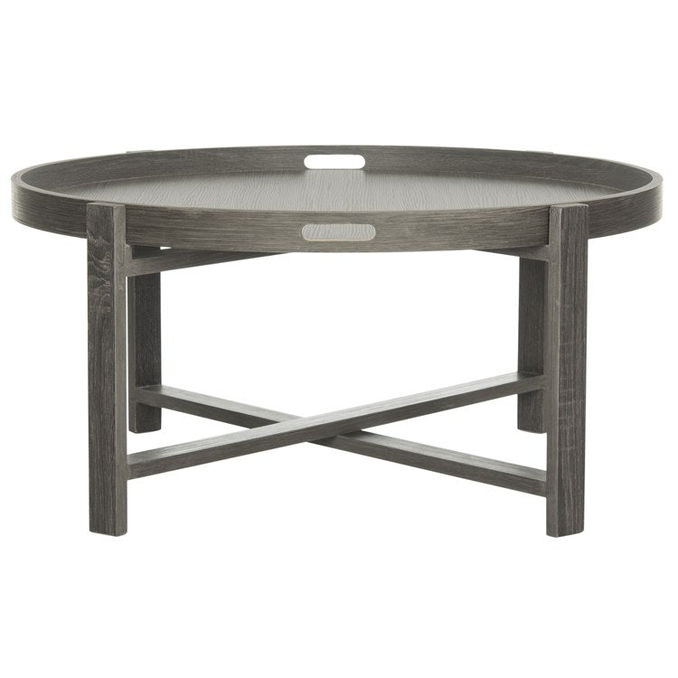 Warm and inviting, this Mid-Century coffee table was inspired by the home of an iconic Finnish designer and architect. Its deep dark gray hue and generous round figure with x-style base bring soft geometric form to the modern interior. A modern classic.