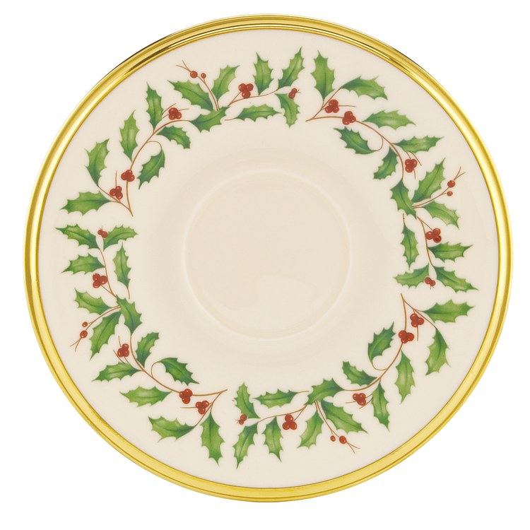 Part of the time-honored Lenox Holiday Dinnerware Collection, Lenox’s holly and berry motif adorns the surface of this Holiday Tea Saucer. Crafted from porcelain with a rich, 24-karat gold trim for an opulent, holiday-themed tableware addition.