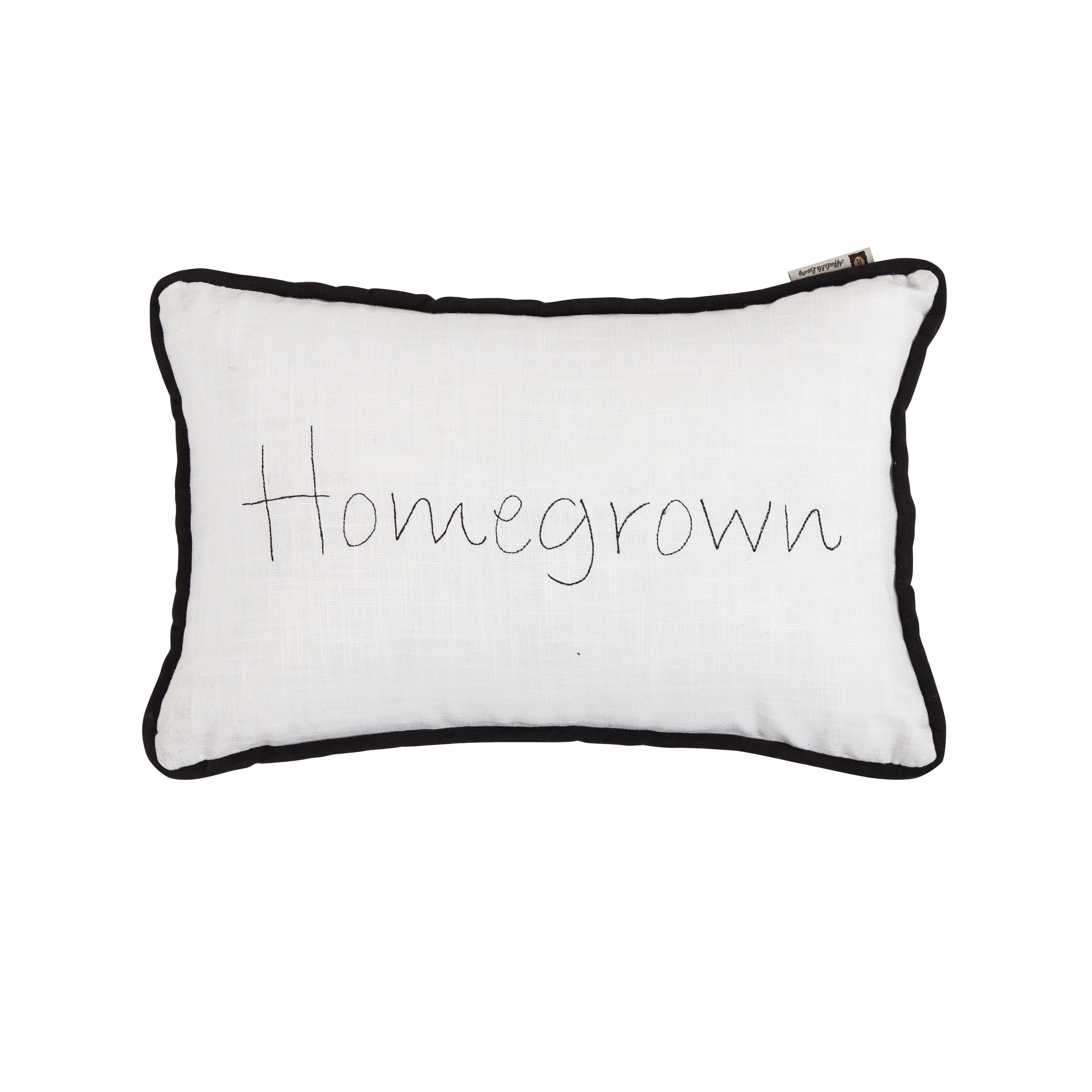 Inspire a charming and rustic ambiance in your home with this Homegrown Embroidery Pillow. The bold contrast between the solid black flange and the delicate embroidery make this a modest yet refined decorative piece, perfect atop your bedding or sofa set. Coordinate this pillow with other pillows and bedding sets from our Blackberry Collection for a cozy, countryside aesthetic.