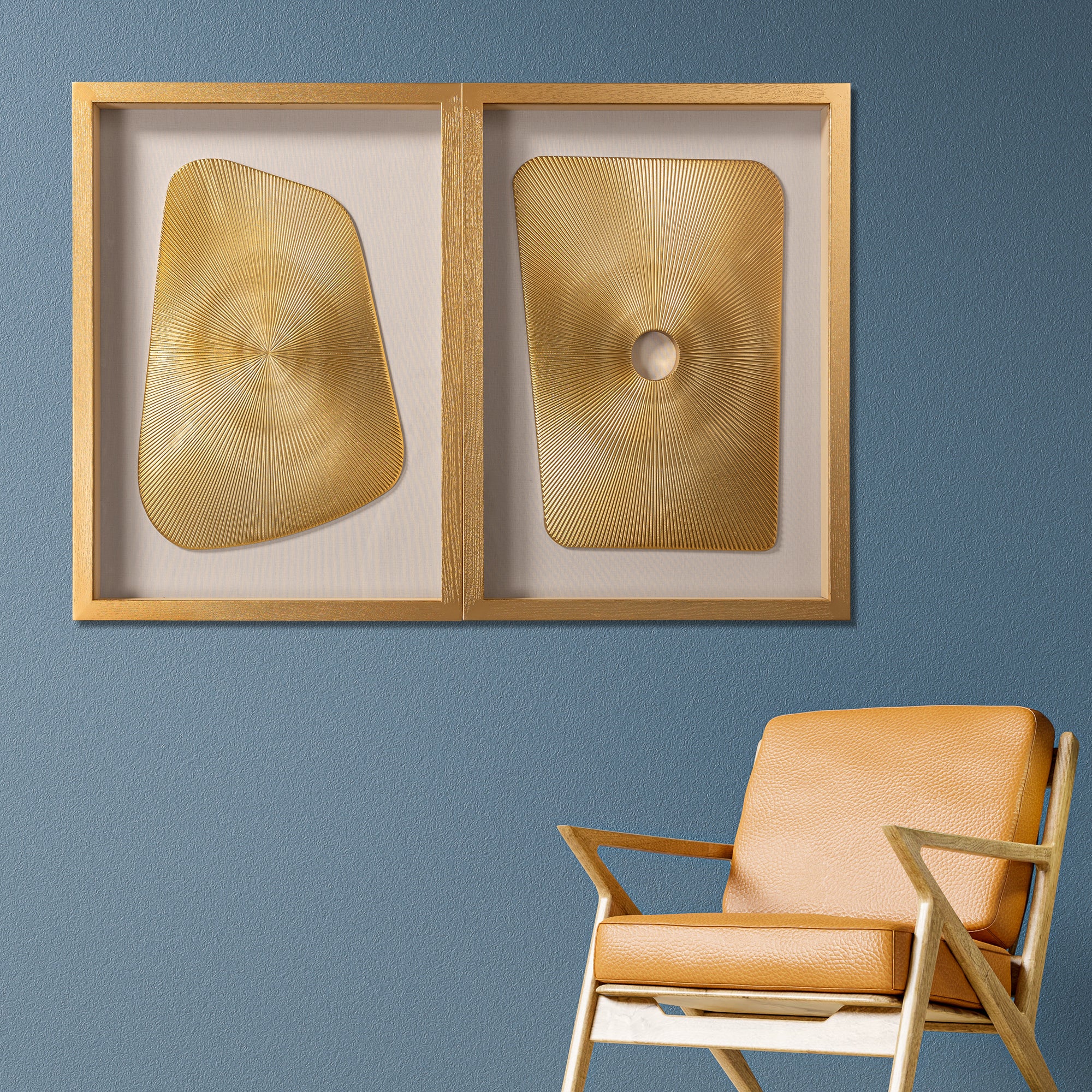 Enhance your living space with the Golden Abstract Shadow Box Set, a stunning combination of modern artistry and luxurious design. This decorative wall painting features a pair of golden abstract designs with fine linear textures, creating a mesmerizing radiance that elevates any interior. Enclosed in a premium shadow box frame, this wall painting art seamlessly blends contemporary aesthetics with timeless sophistication. The intricate detailing and dynamic interplay of light and shadow make this an exceptional wall painting for bedroom, living room, or hallway. Whether used as a statement piece or an accent to a larger décor scheme, this shadow box for home adds depth and elegance to your walls. Its golden tones and unique design make it a perfect item for home decoration, reflecting an artistic balance of structure and fluidity. Crafted with high-quality materials, this wall painting for home decoration ensures durability and long-lasting beauty, making it a must-have for art enthusiasts and interior design lovers alike.