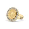 The 311 Honor shares many features with the 310 Glory but opts for brilliant round stones on the side instead of baguettes, giving the ring a more elongated effect. This Texas Tech Health Sciences Center ring pairs a two-tone seal with a stunning stones-on-shank band.