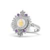 If you like the popular 249 Eternity ring, you’ll love the 250 Triumph! This ring is based on a similar design to the Eternity but with fewer, larger stones, allowing for a more prominent halo. This 14K gold UMHB ring features a smooth band and the officially approved University of Mary Hardin-Baylor seal. For those wanting an eye-catching and comfortable UMHB ring, the 250 Triumph is a beautiful choice!